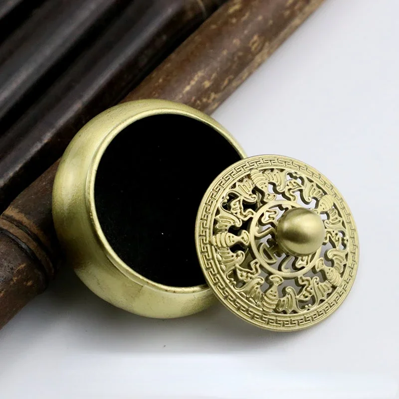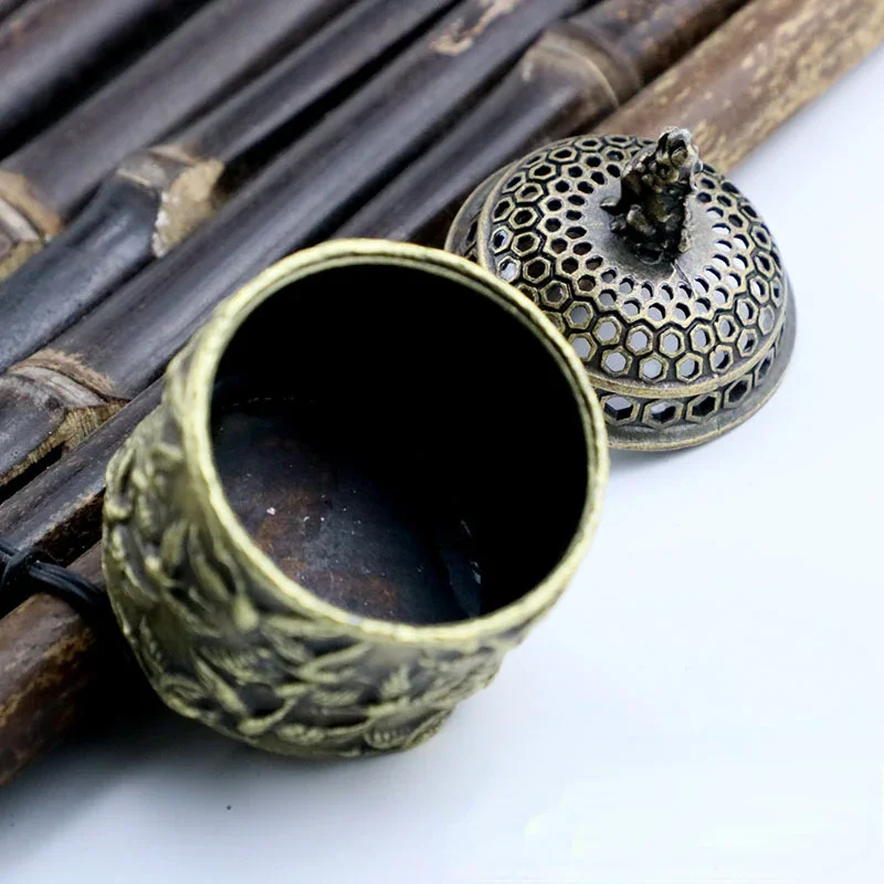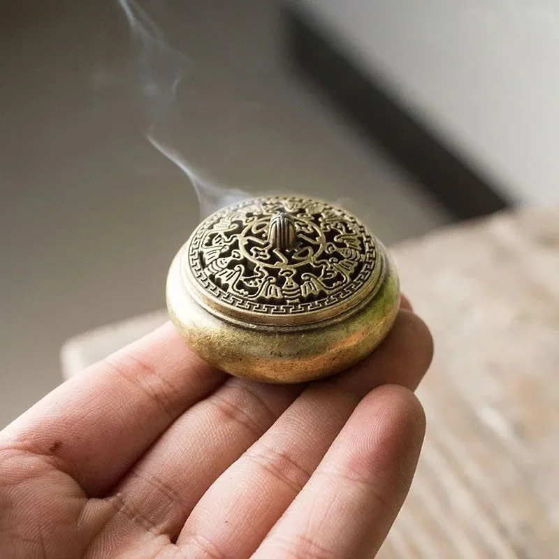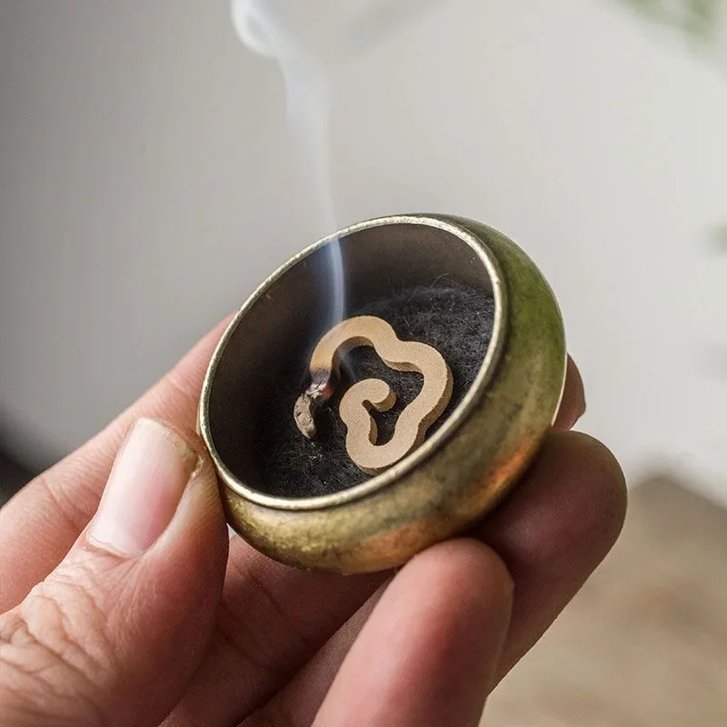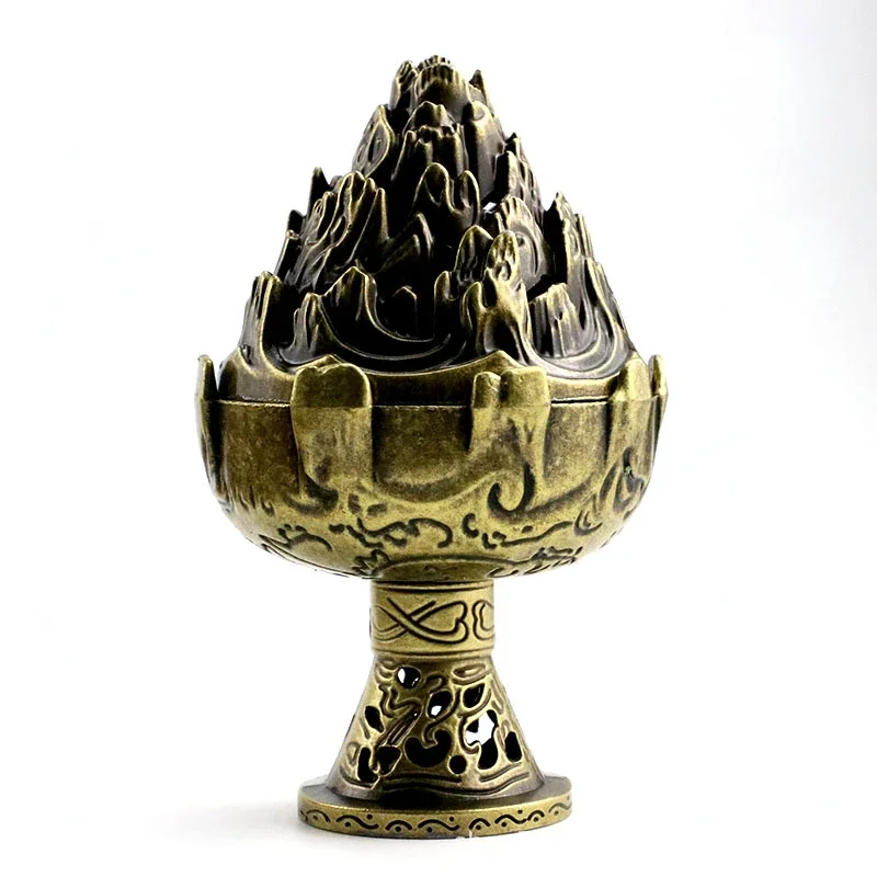 Lotus-shaped zinc-copper alloy incense burner, compact and easy to use.