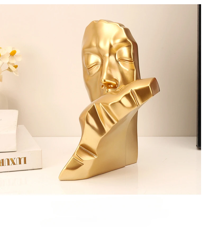 Resin Crafts Abstract Portrait Sculpture Couple Gold Head Ornament