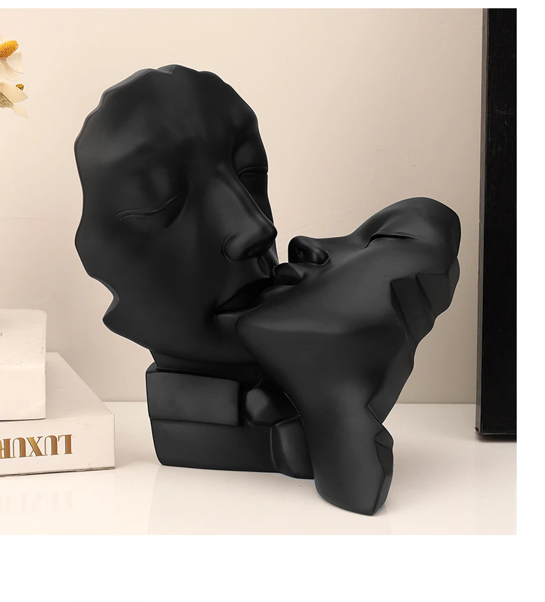 Resin Crafts Abstract Portrait Sculpture Couple Gold Head Ornament Wedding Gifts Resin Decorative Figurines Home Decoration