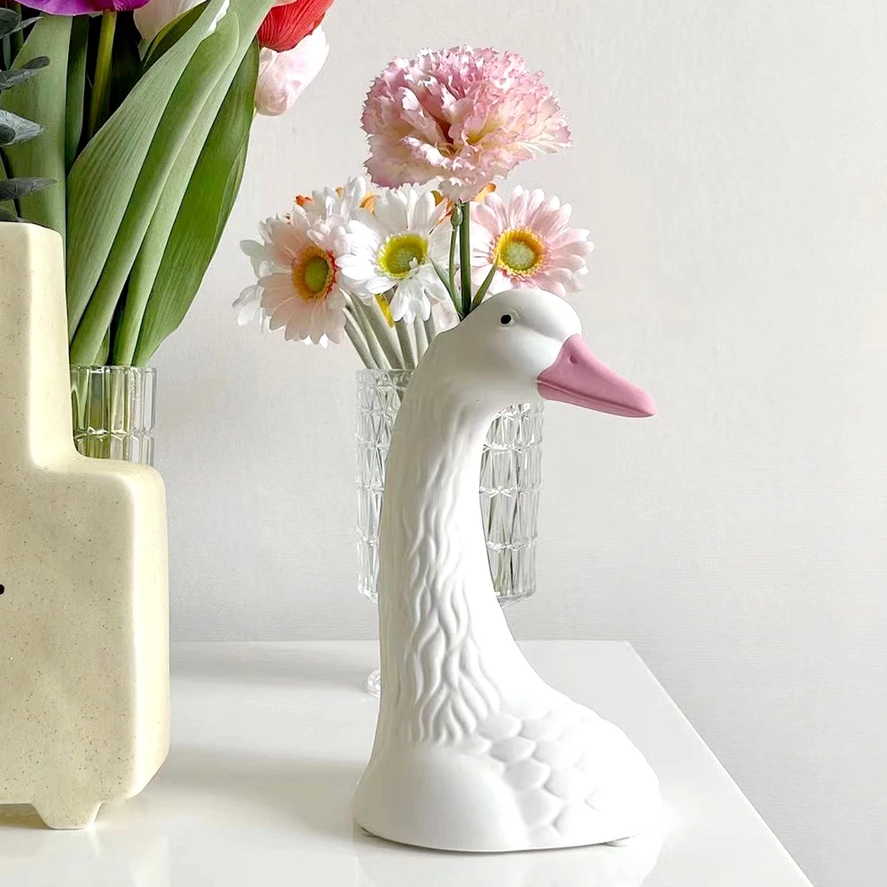 Swan Flower Vase Pink Gold Elegant Funky Design Vases Living Room